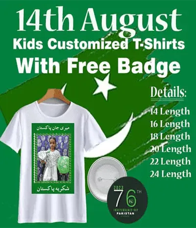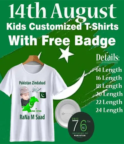 Men’s, women’s, and children’s Pakistani Independence Day 14 August T shirt Design . so colors is white and green and Fabric is Poly cotton that doesn’t wrinkle.