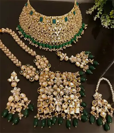 We provide 1# Pakistani Bridal Jewellery Sets variety of bridal jewellery sets that contain matching necklaces, earrings, and bindia or jhoomar in addition to necklaces and earrings.