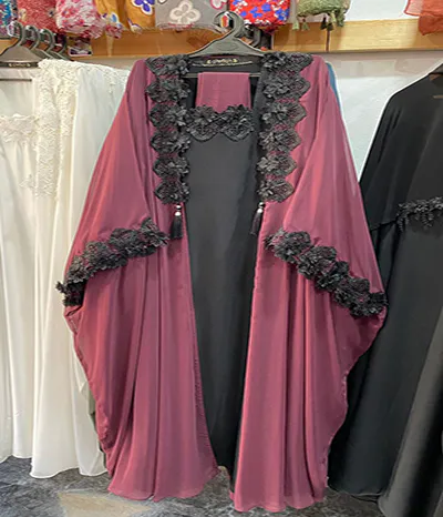 An abaya featuring a dubble butterfly pattern