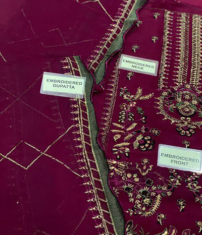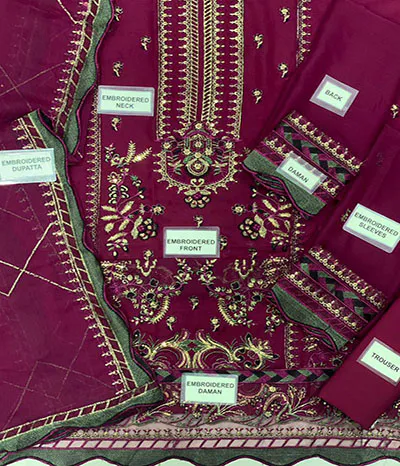 Details of the Fabric: Full Chiffon Suit with Dyed Malai Trousers