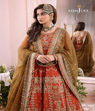 Purchase our exquisite line of  long-sleeved chiffon frock asim jofa dresses, which embody our distinctively stylish aesthetic. Pakistani delivery is possible.