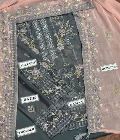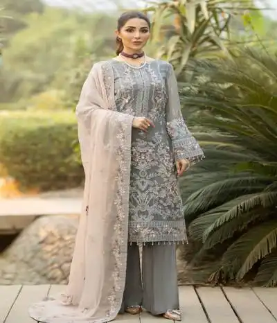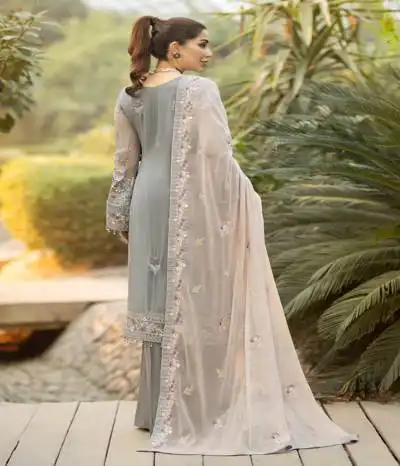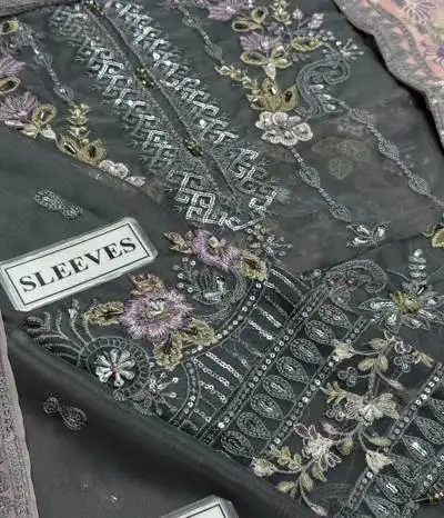 remarkable assortment of chiffon suit women unstitched apparel. These pieces are made from opulent Bemberg Chiffon and have elaborate embroidered patterns.
