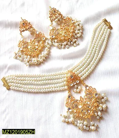 3 pieces total: 1 choker, 1 pair of earrings, and 1 piece of Bindia