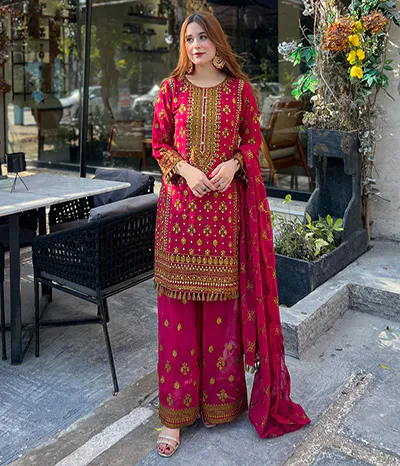 embroidered sharara set dresses have a distinct niche in the bridal wear market. Bridal shararas are frequently embellished with zari work, sequins, and opulent embroidery, making them…