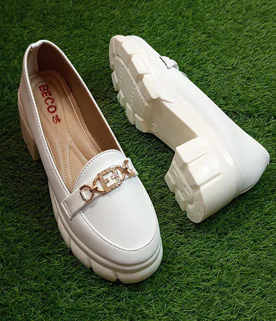 A lug sole, stitched accents, rounded toe, and a slip-on fit characterise the faux leather upper.