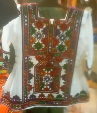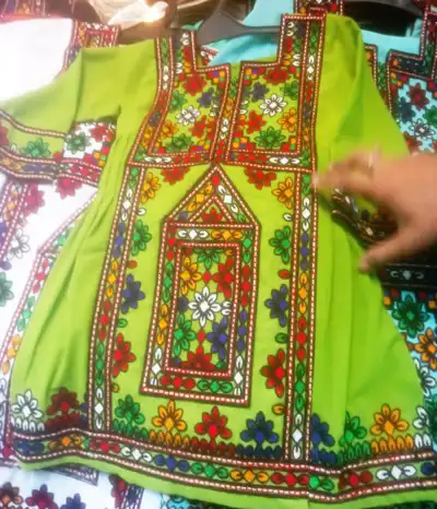 Girls’ traditional, elaborately embroidered Balochi attire.