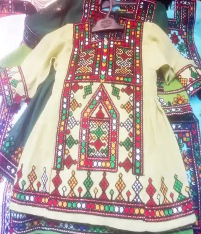 girls dress balochi collection featuring distinctive patterns, colors, and motifs that are representative of Balochi culture, as well as beautiful traditional handwork (needlework).