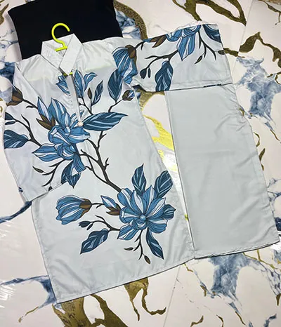 Two pieces of a front-painted, digitally printed flapper shirt for kids