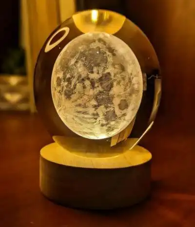 This Moon Crystal Ball LED decoration home, which features a detailed 3D-engraved moon enclosed in a 60mm crystal sphere, will provide a mystical touch to any space.