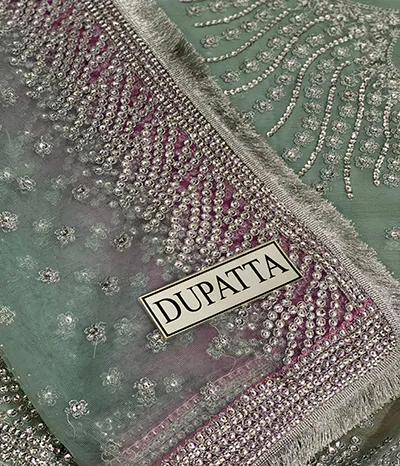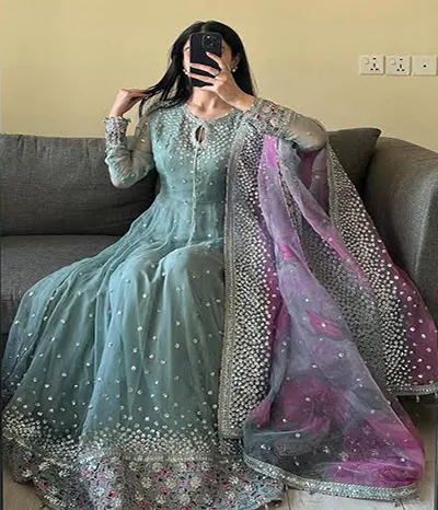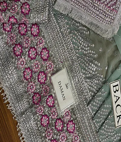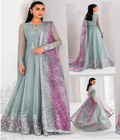With the Fancy Heavy Embroidered Chiffon Maxi Dress with Emb. NET Dupatta,