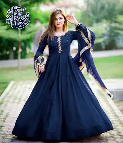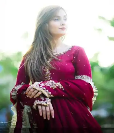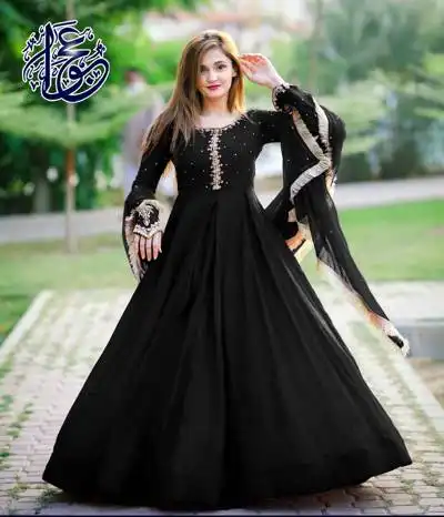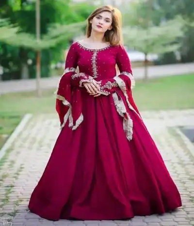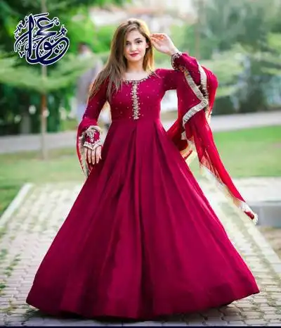 Kaya Work Embroidered Long Maxi with Lace Work Dupatta Trousers, Neck, and Sleeves, Three Pieces