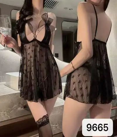 Nighty-9665 Pearl Style Transparent Mesh Net Hot and Sexy