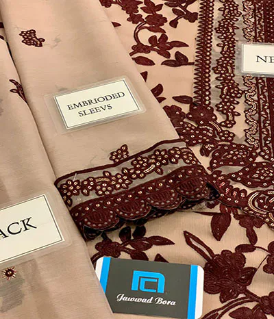 heavy embroidered sleeves border and totally embroidered spengle work sleeves made of chiffon