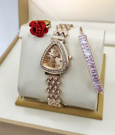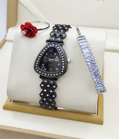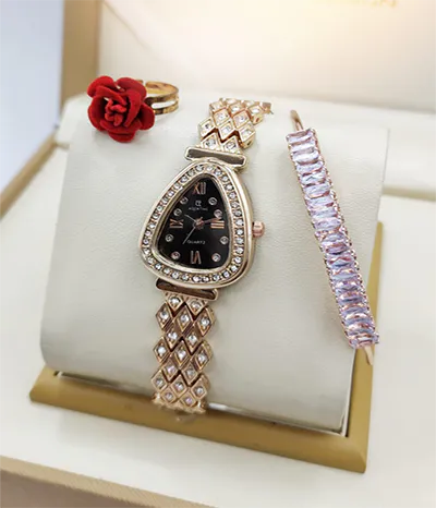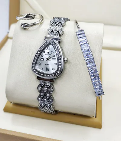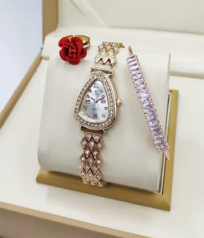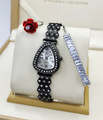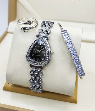 A newcomer! Luxurious stone jewelry watch for ladies, including a watch, bracelet, and ring, comes in a standard VIP gift box.