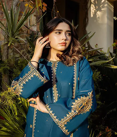With this gorgeous two piece embroidered lawn suit in a classic black color with gorgeous white embroidery, you can be sure to exude style and charm this summer.
